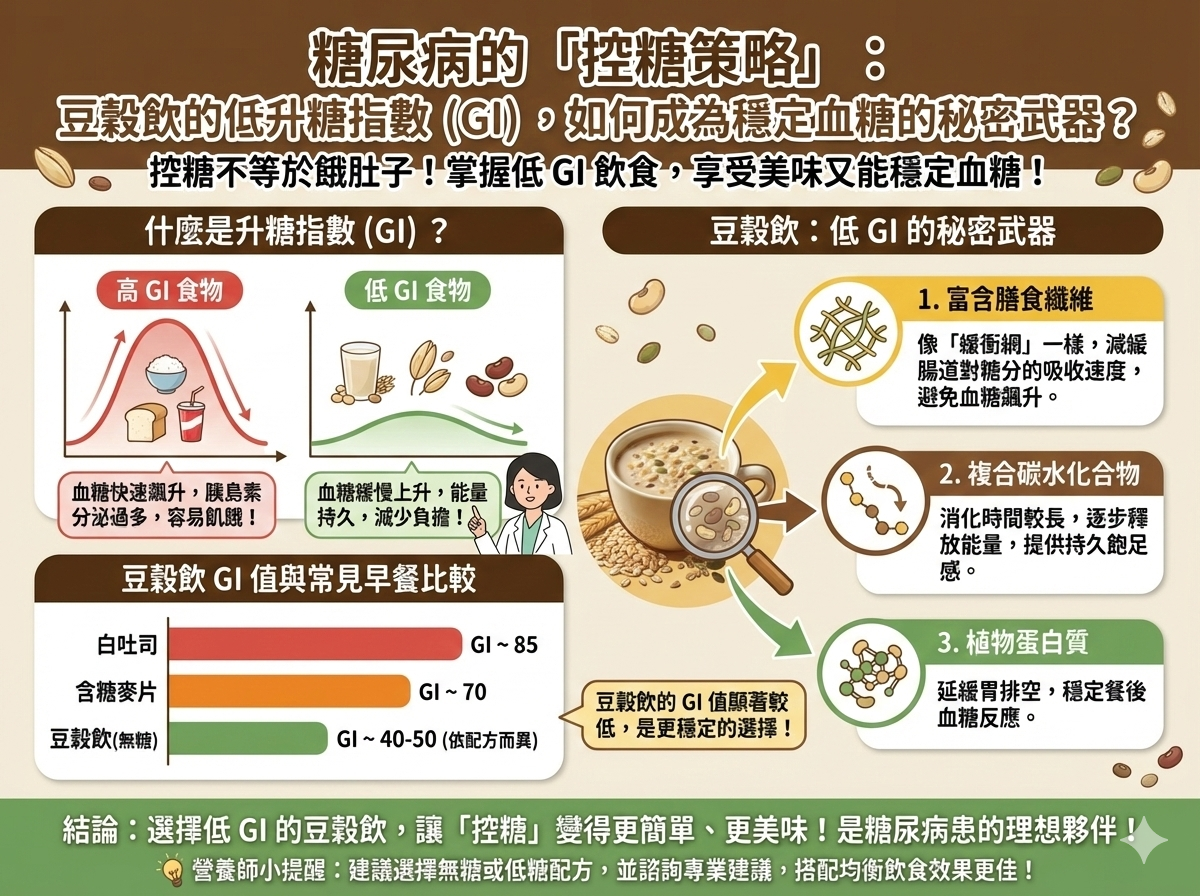 Q025 糖尿病的「控糖策略」: 豆穀飲的低升糖指數,如何成為穩定血糖的秘密武器?