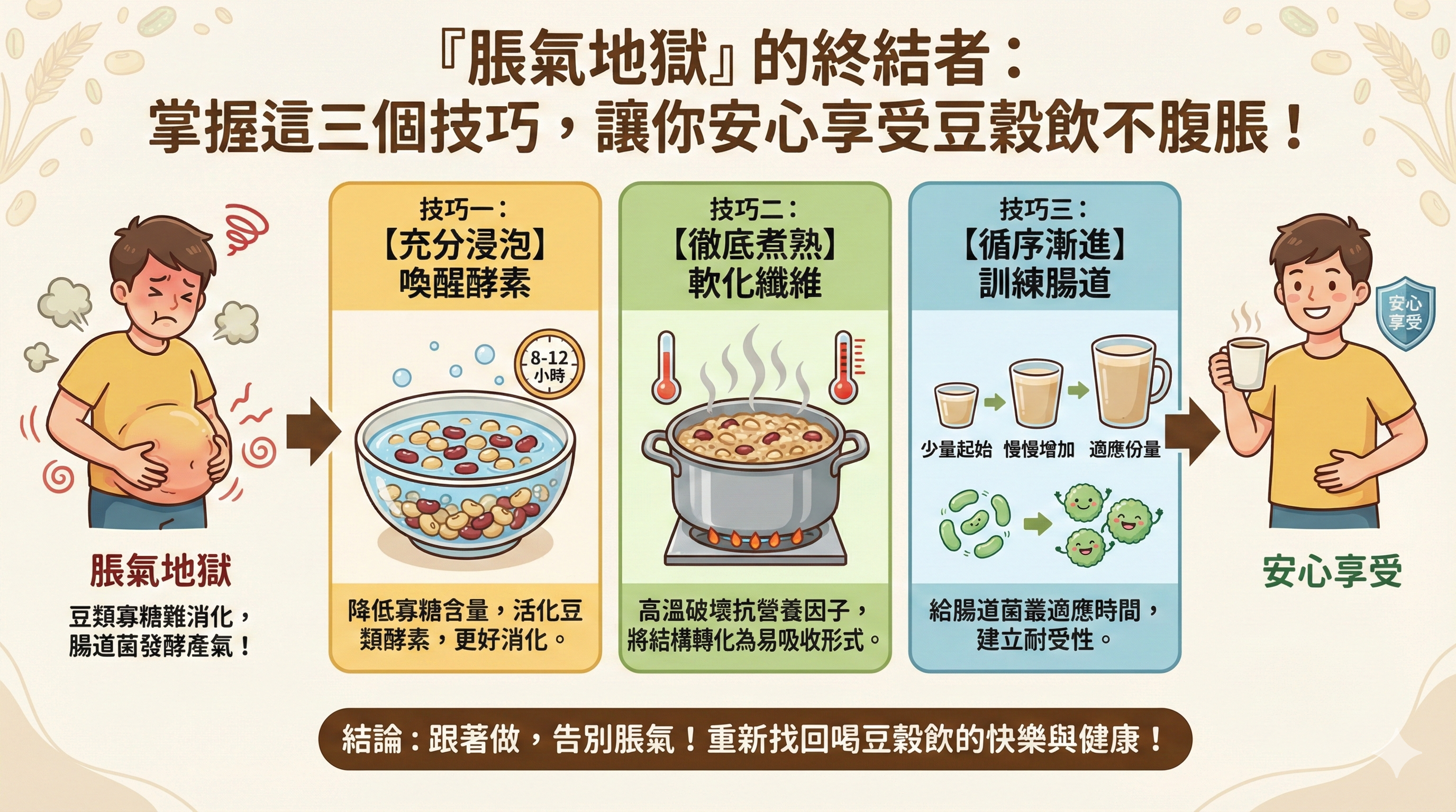 Q042 「脹氣地獄」的終結者: 掌握這三個技巧,讓你安心享受豆穀飲不腹脹!
