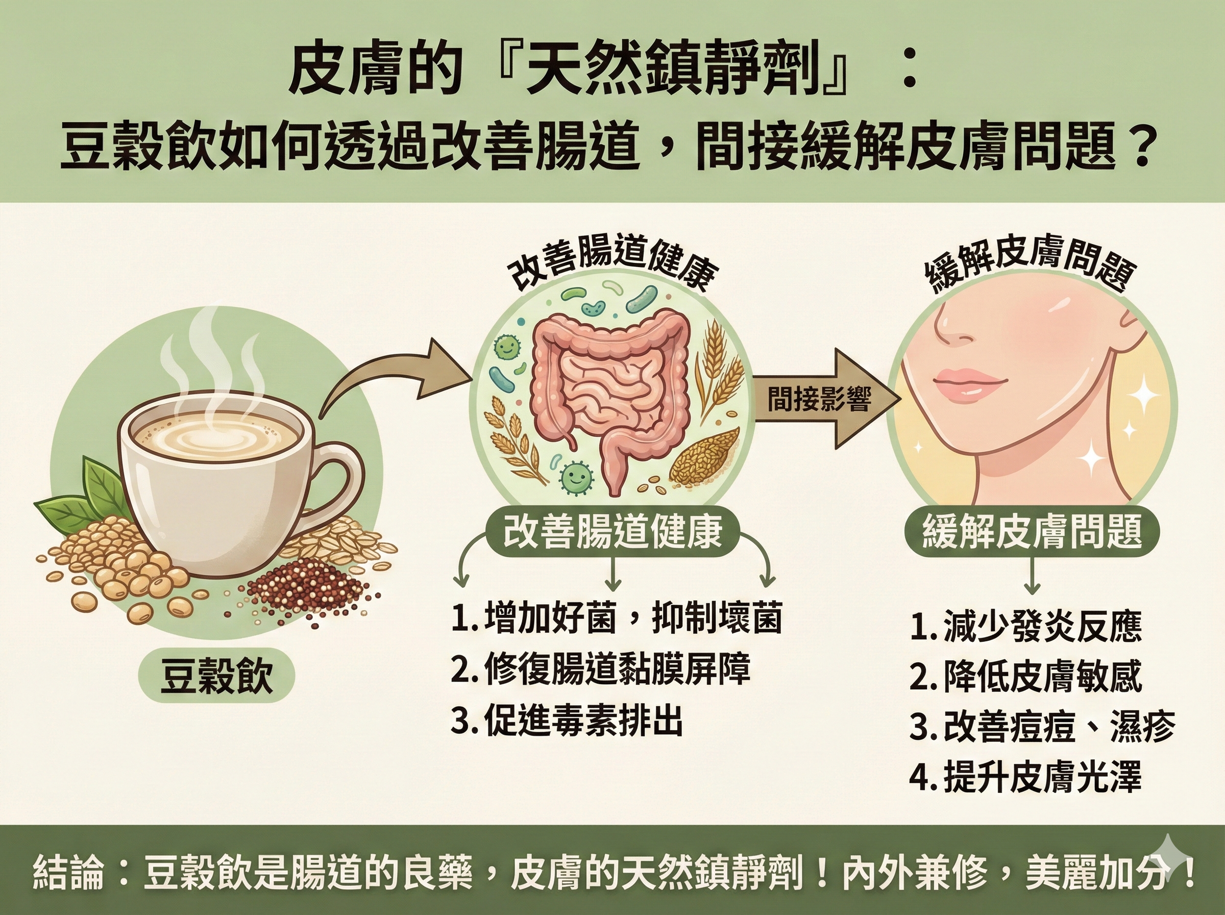 Q022 皮膚的「天然鎮靜劑」: 豆穀飲如何透過改善腸道,間接緩解皮膚問題?